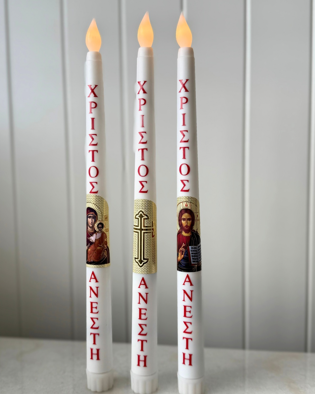 A child friendly alternative to burning candles, these LED Easter decorated candles & lambathes are a perfect safe choice.