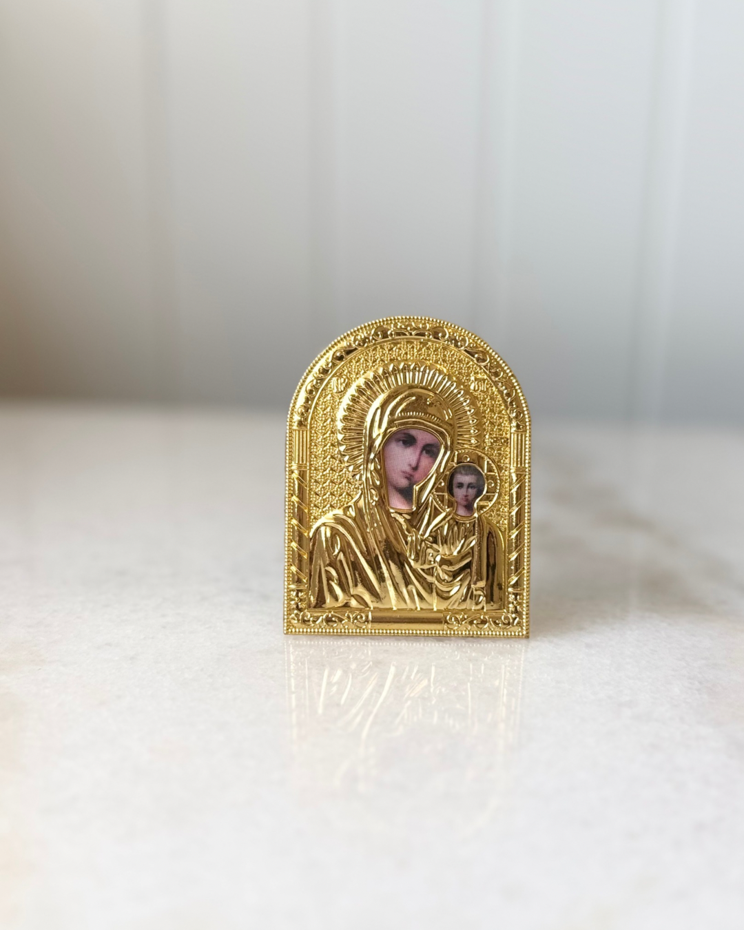 Orthodox Icon of Mother Mary & Jesus - Small Gold